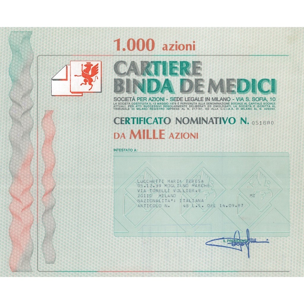ERTIFICATO NOMINATIVO DA 1000 AZIONI