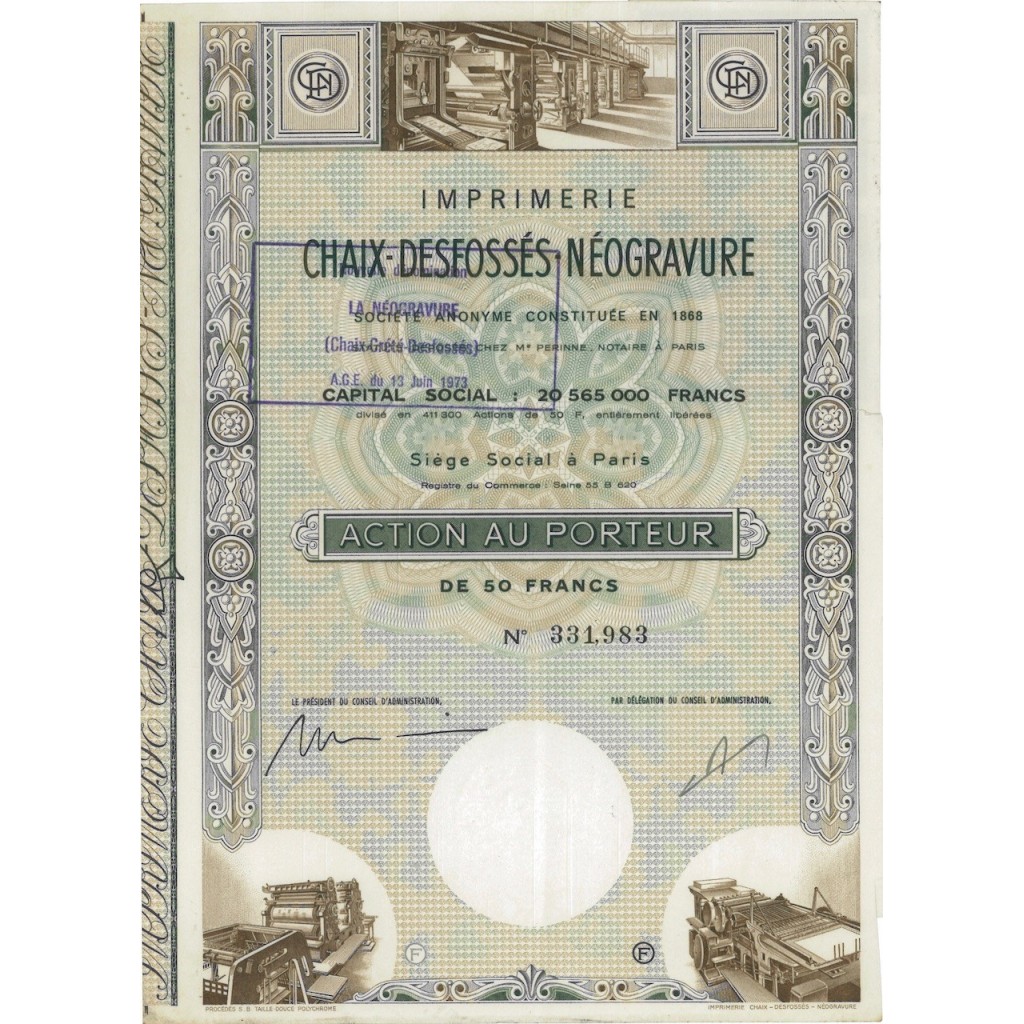 IMPRIMERIE CHAIX-DESFOSSES NEOGRAVURE - 1 AZIONE - 1973