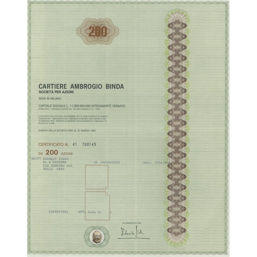 BINDA, Ambrogio. - Nato a Milano il 15 febbr. 1811 da Gaetano e da Teresa Aspersioni, e rimasto ben presto orfano, fu preso sotto tutela da uno zio farmacista a Gallarate. Nell'estate dell'anno 1818, con il consenso dello zio, il B. si impiegò a Milano presso la fabbrica di passamanerie Vigoni. Nel 1829 acquistò due vecchi telai con venti svanziche (circa lire 16,60; somma equivalente al salario di circa dieci giornate lavorative) e iniziò l'attività in proprio, producendo per la Casa Cesati pezze per la fattura dei bottoni. Nel 1833 sposava Angela Grugnola, dalla quale ebbe tre figli: Carlo, che si interessò all'industria cartaria, e seguì il padre a Vienna nel 1857 per accelerare le pratiche della costruzione della cartiera di Conca Fallata; Cesare, che si interessò all'industria dei bottoni; Girolamo, morto ancor giovane.