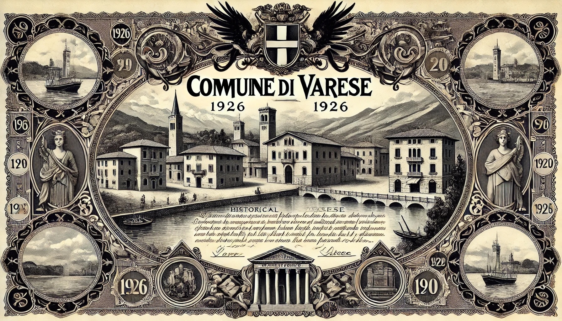 Varese, situata nella regione Lombardia, è una città con una ricca storia che risale all'epoca romana. Durante il Medioevo, Varese divenne un importante centro commerciale grazie alla sua posizione strategica vicino ai laghi e alle montagne. Nel XIX secolo, la città vide un periodo di crescita economica e industriale, con l'espansione delle infrastrutture urbane e lo sviluppo delle ferrovie. Negli anni '20 del XX secolo, Varese continuò a crescere, e l'emissione di obbligazioni come quella del 1926 era parte di uno sforzo per finanziare ulteriori miglioramenti infrastrutturali e progetti di sviluppo urbano.