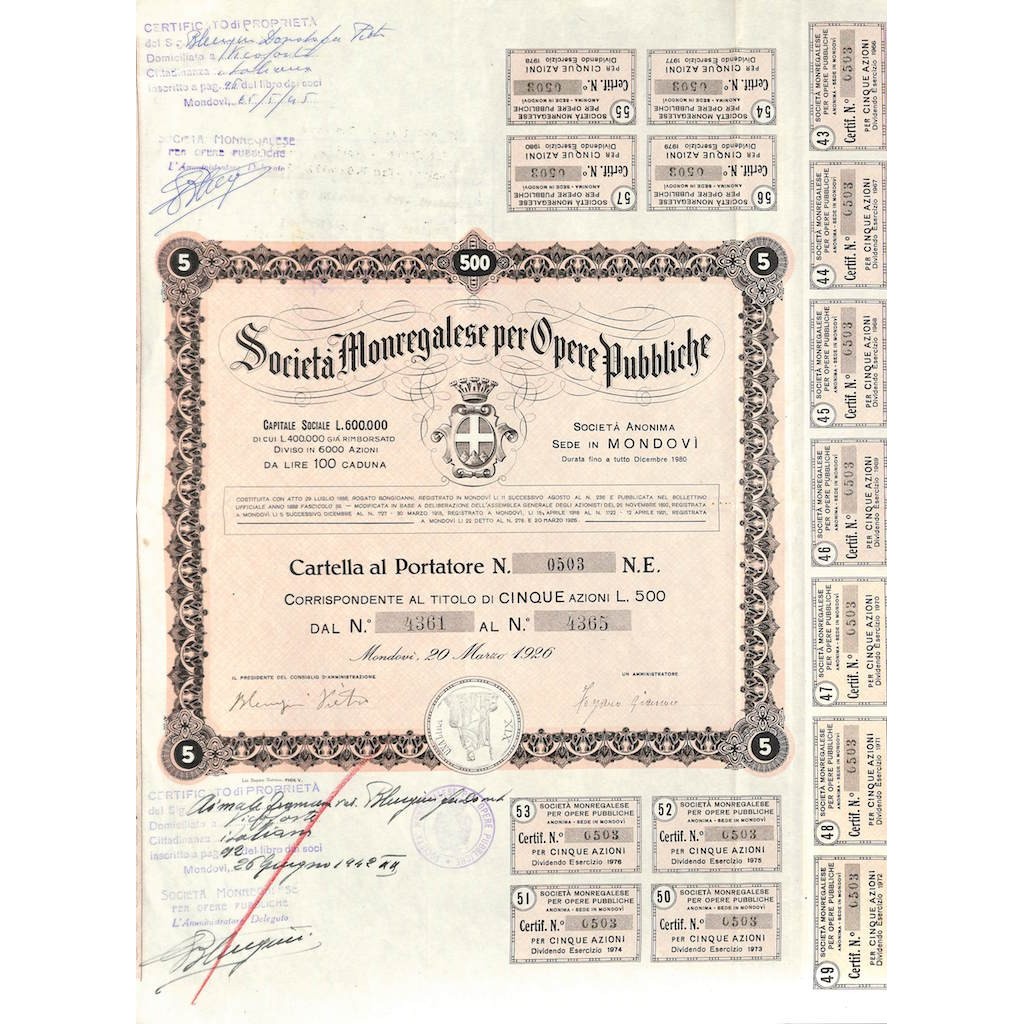 CARTELLA AL PORTATORE PER 5 AZIONI