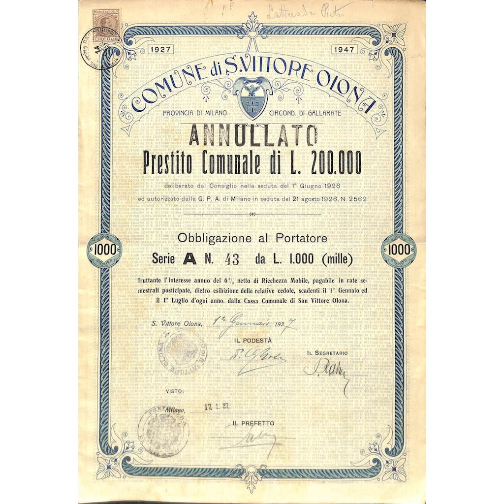 DELIBERATO CON CONSIGLIO DEL PRIMO GIUGNO 1926