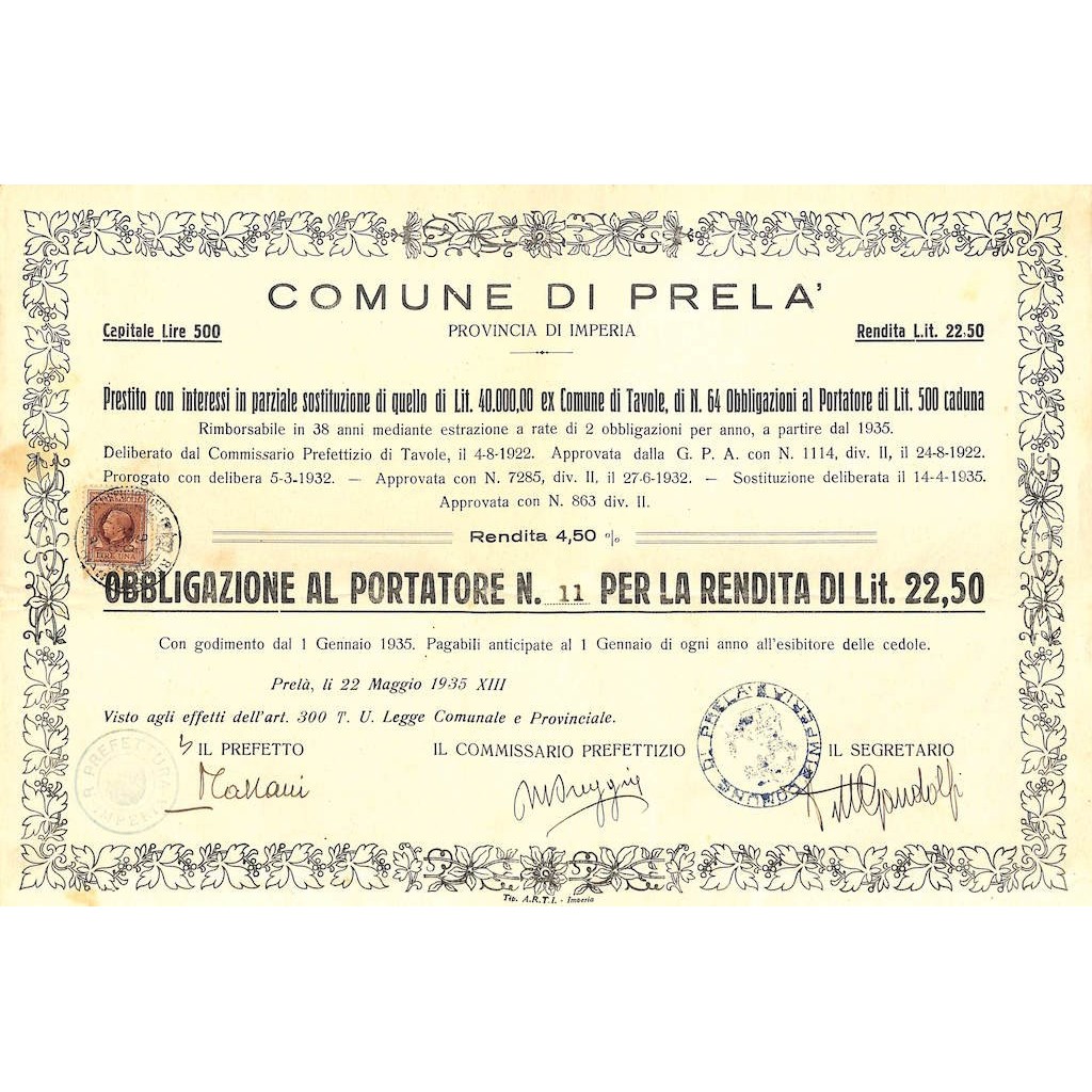 UNA OBBLIGAZIONE AL PORTATORE