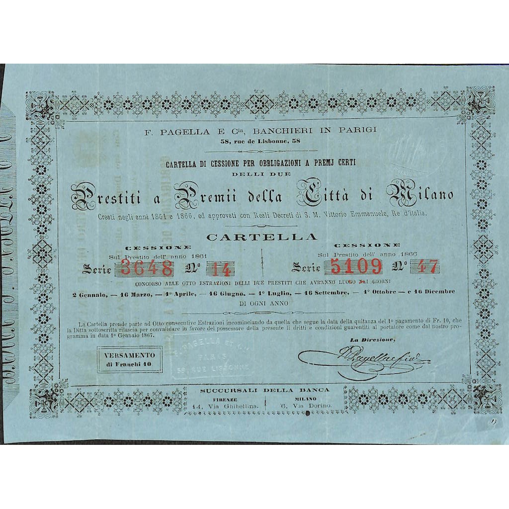 CARTELLA PER LA CESSIONE DI UNA OBBLIGAZIONE