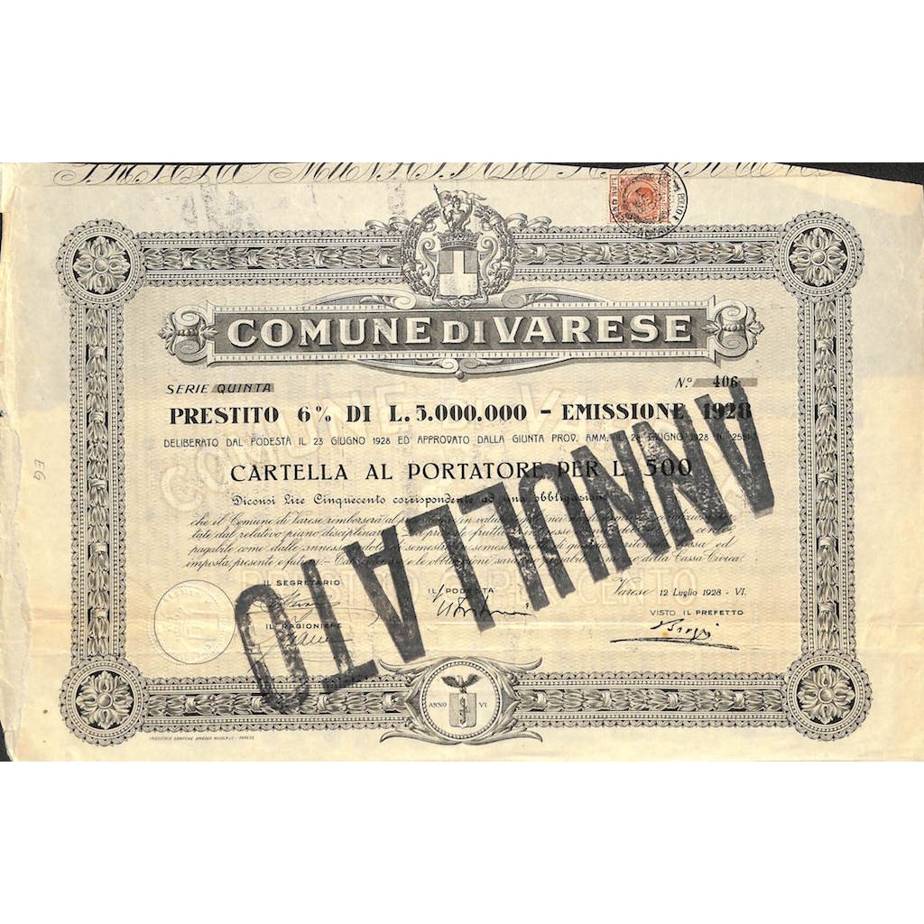 CARTELLA AL PORTATORE PER 500 LIRE ( SERIE QUINTA), INTERESSE 6% - EMISSIONE 1928