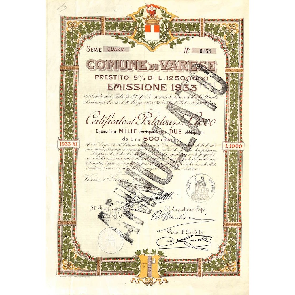 CERTIFICATO AL PORTATORE PER 2 OBBLIGAZIONI DA LIRE 500, INTERESSE 5%