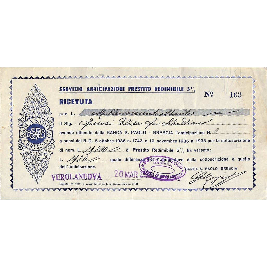 RICEVUTA DI LIRE 1980