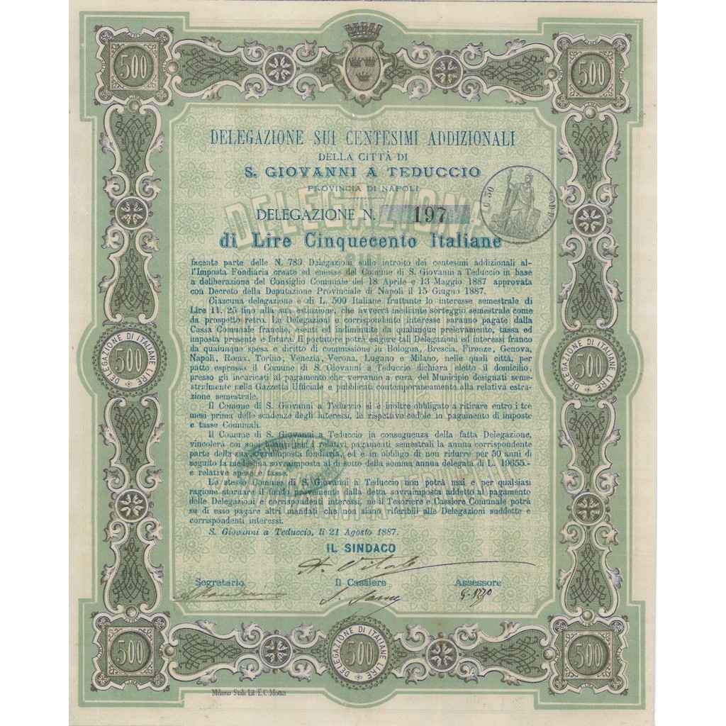 DELEGAZIONE SUI CENT. ADDIZIONALI LIRE 500 -S. GIOVANNI A TEDUCCIO 1887