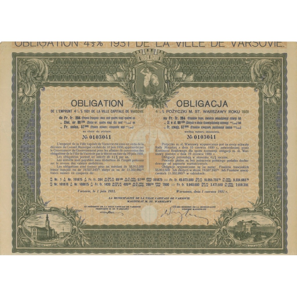 Questa obbligazione è una testimonianza significativa della resilienza economica di Varsavia nel periodo tra le due guerre mondiali. È un pezzo pregiato per chiunque sia interessato alla storia economica e politica dell'Europa centrale.