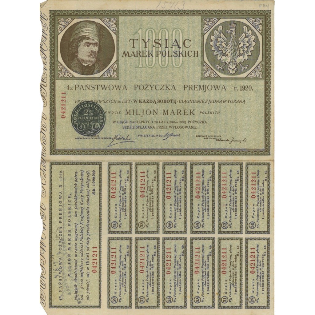 PANSTWOWA POZYCZKA PREMJOWA - 1000 MARCHI - 1920