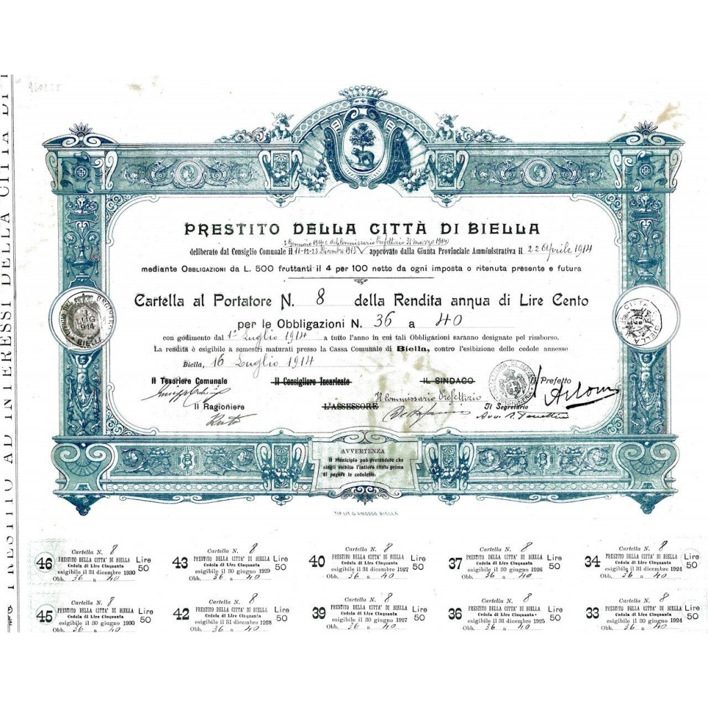 1914 - PRESTITO DELLA CITTA' DI BIELLA