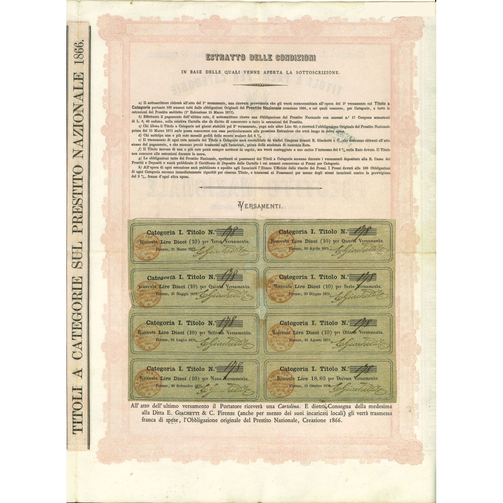 Emissione di 10.000 titoli divisi in 10 Categorie della Ditta E. Giacchetti & C. di Firenze