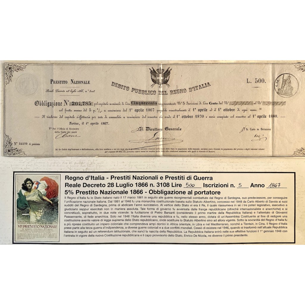 1867 - PRESTITO NAZIONALE CARTELLA PER...