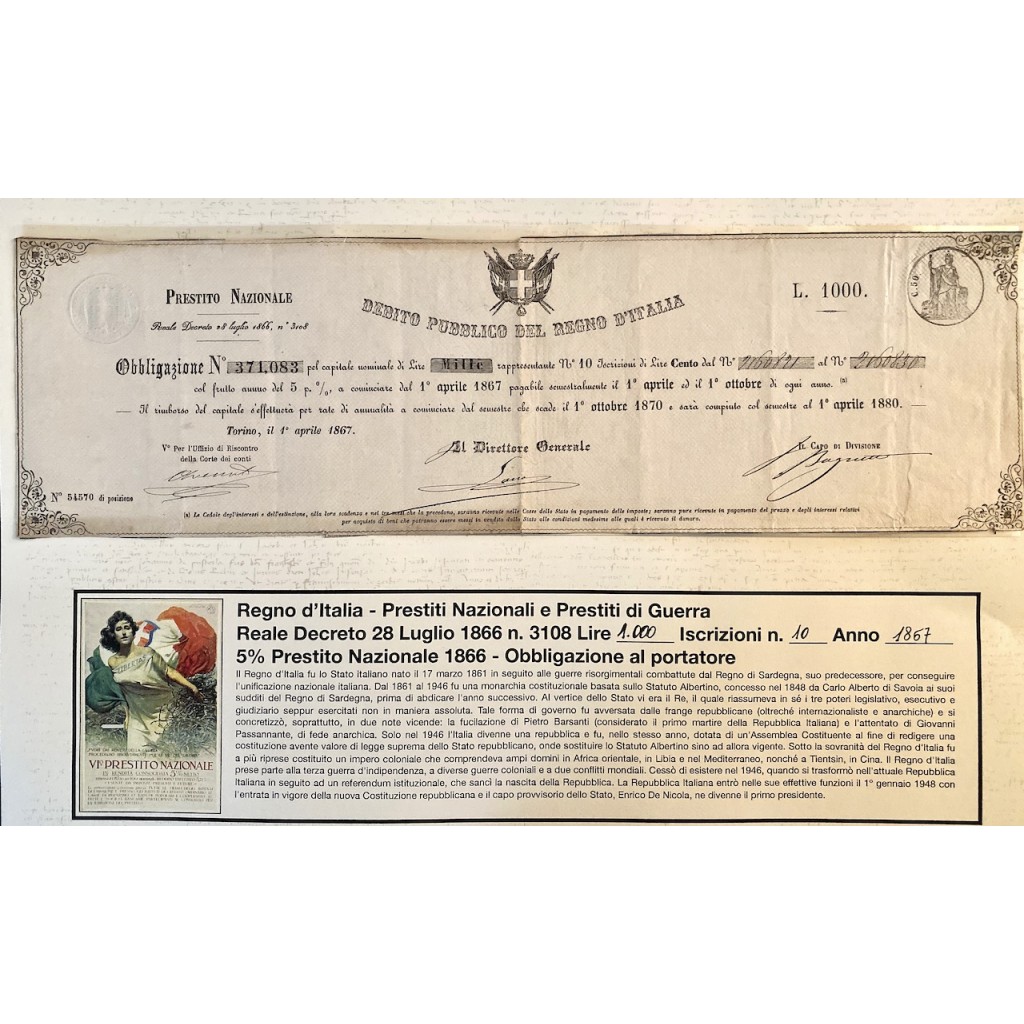 1867 - PRESTITO NAZIONALE CARTELLA PER...