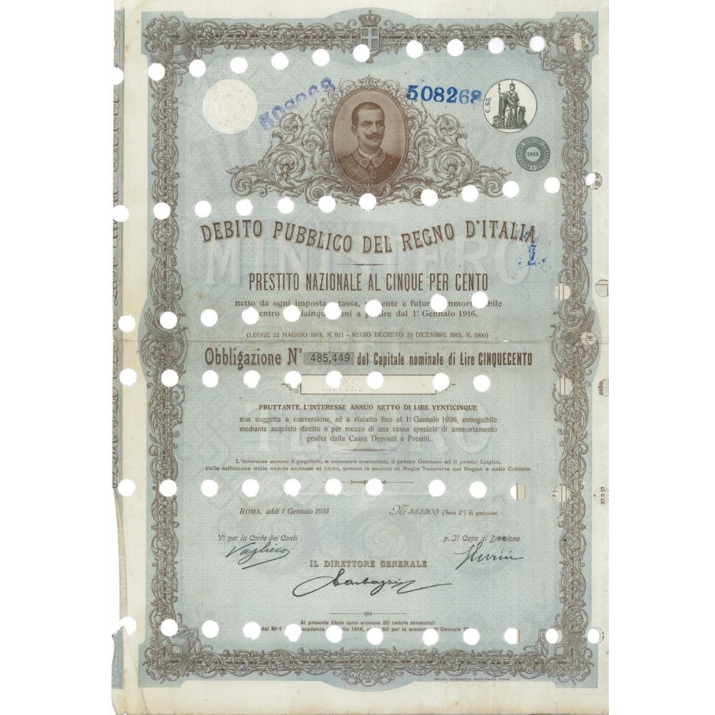 DEBITO PUBBLICO DEL REGNO D'ITALIA - PRESTITO NAZIONALE 5%