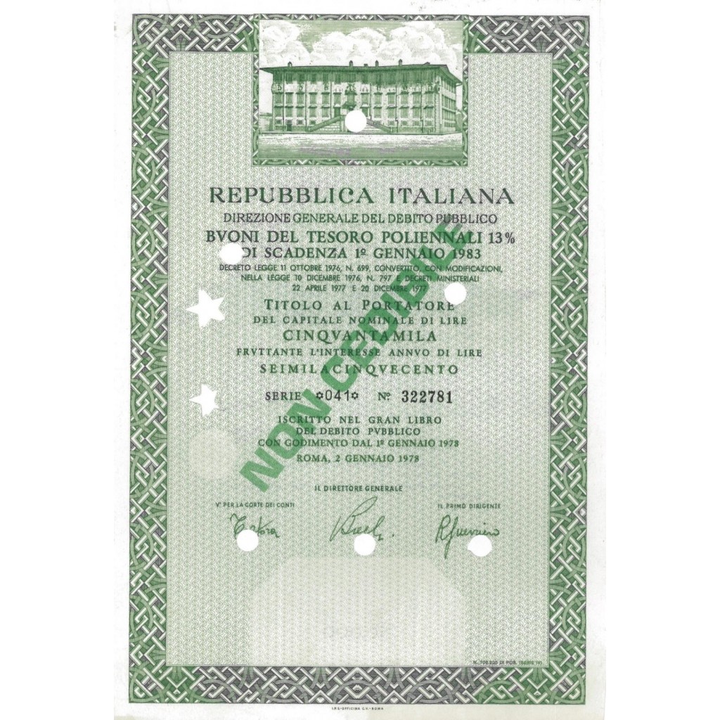 1978 - BTP POLIENNALI SERIE 041 - 50000 LIRE ROMA