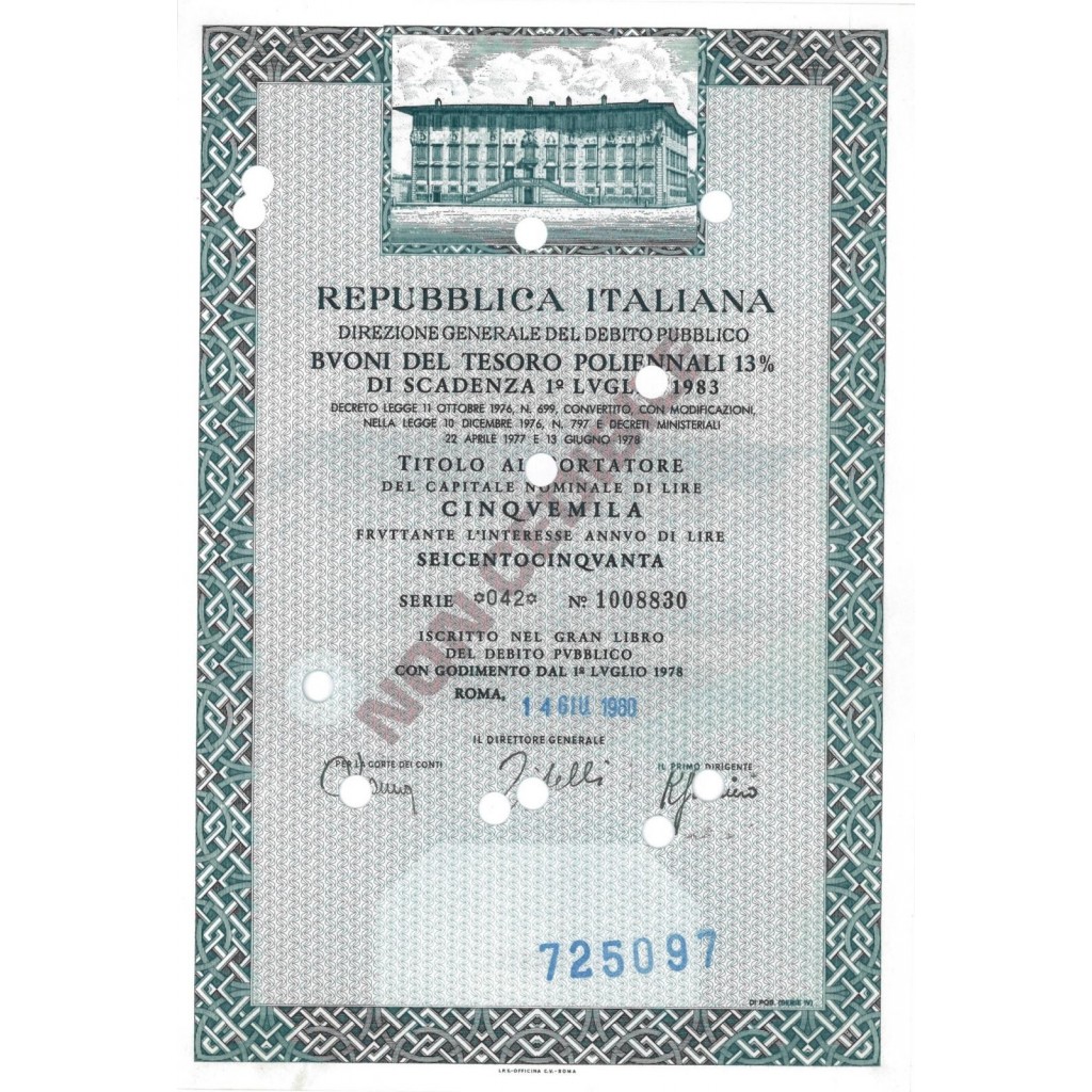 BTP POLIENNALI 13% - SCADENZA 1 LUGLIO 1983