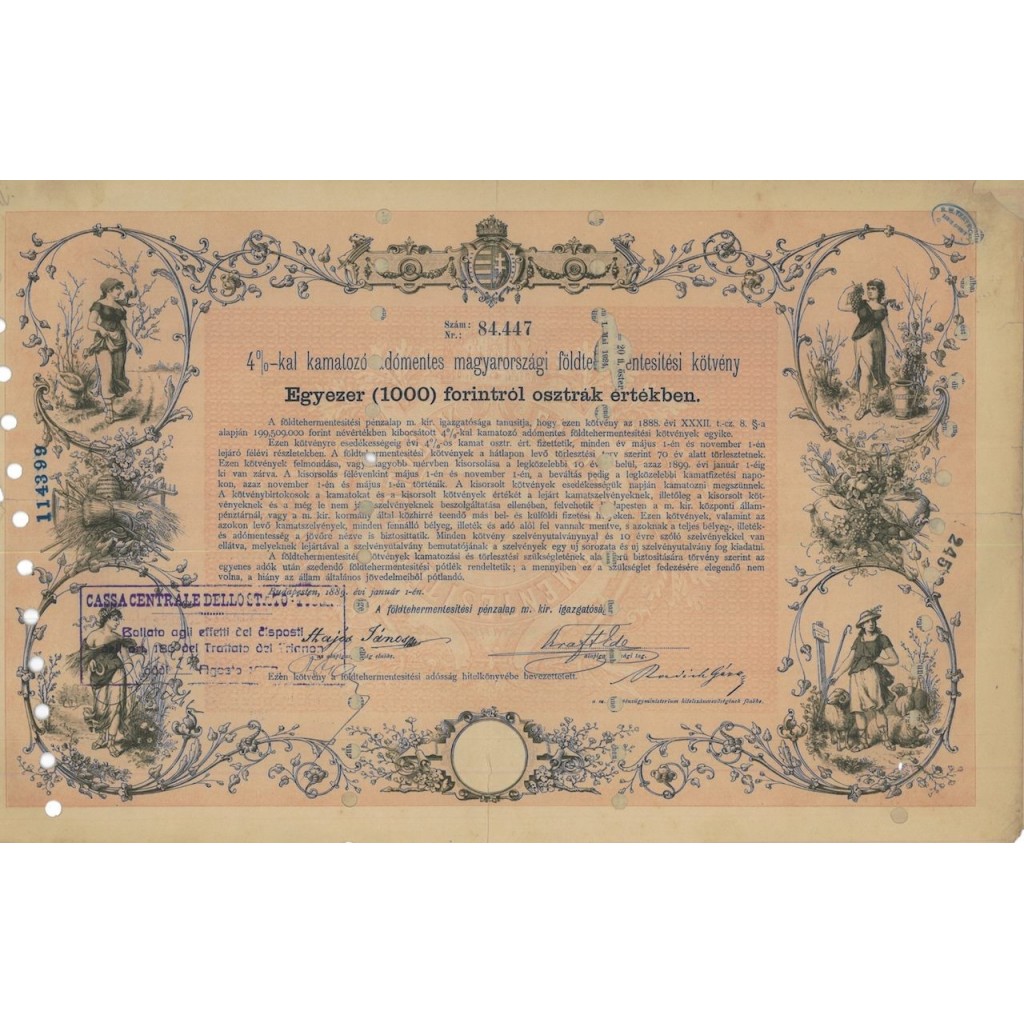1889 - 1 OBBLIGAZIONE - GOVERNO MAGIARO - 1000 DOLLARI