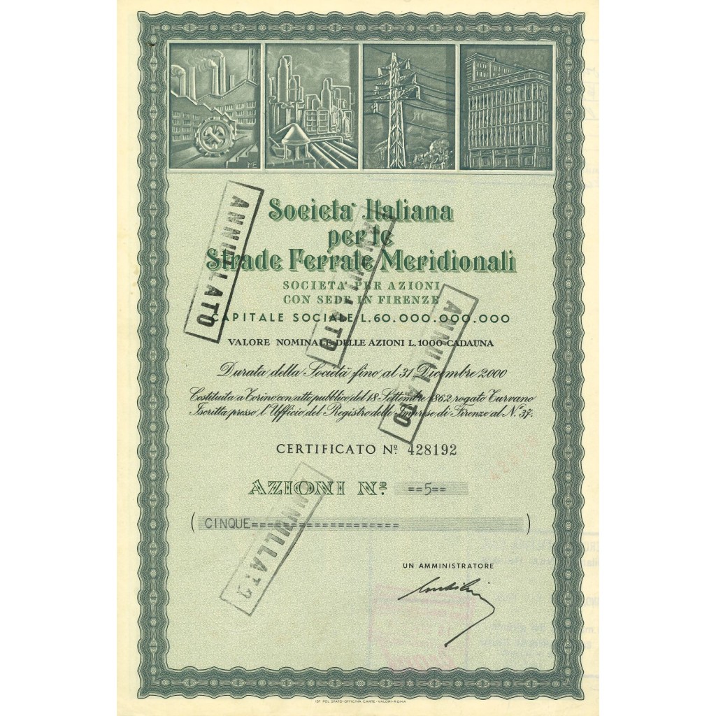 1968 - SOCIETA' ITALIANA PER LE STRADE FERRATE MERIDIONALI - FIVE SHARES