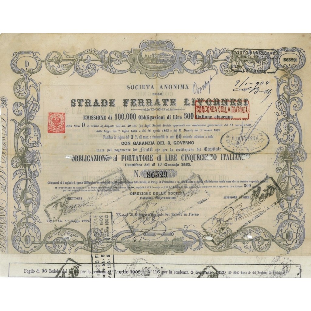 1 OBBLIGAZIONE DI 500 LIRE ITALIANE - EMISSIONE DI 100000 OBBLIGAZIONI