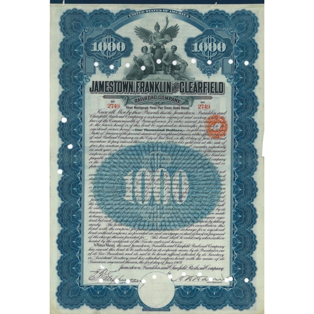 1909 - JAMESTOWN, FRANKLIN AND CLEARFIELD RAILROAD COMP. GOLD BOND $ 1000