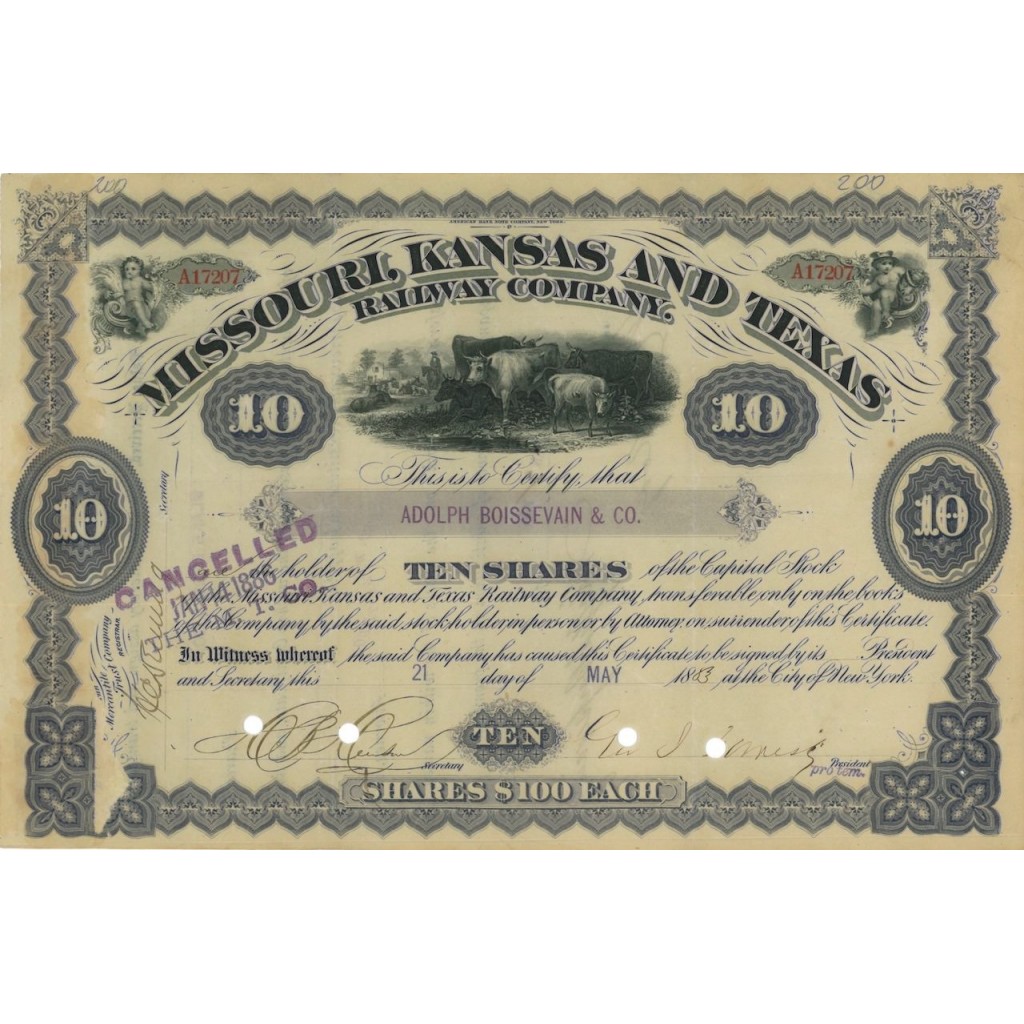 MISSOURI, KANSAS AND TEXAS RAILWAY COMPANY - 10 AZIONI - 1883