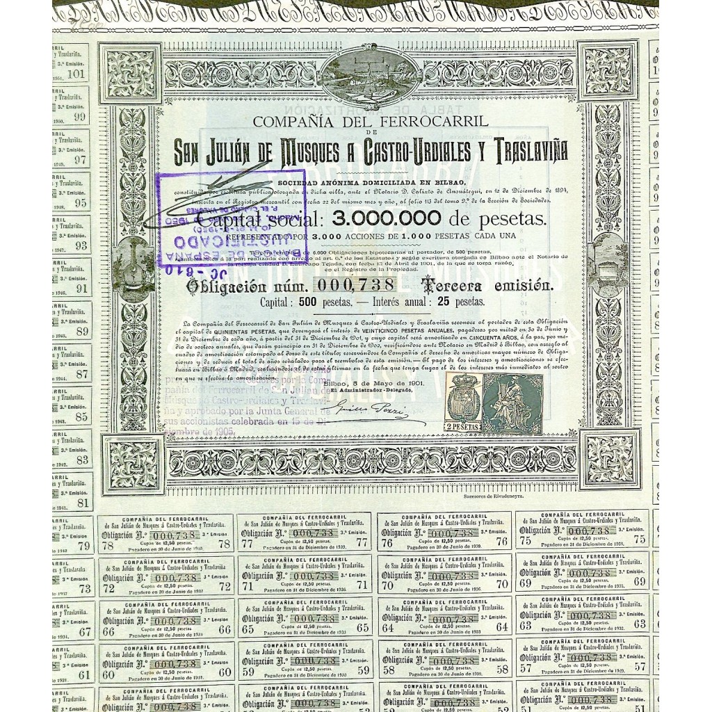 1901 - FERROCARRIL DE SAN JULIAN DE MUSQUES A CASTRO-URDIALES Y TRASLAVINA COMP. DEL