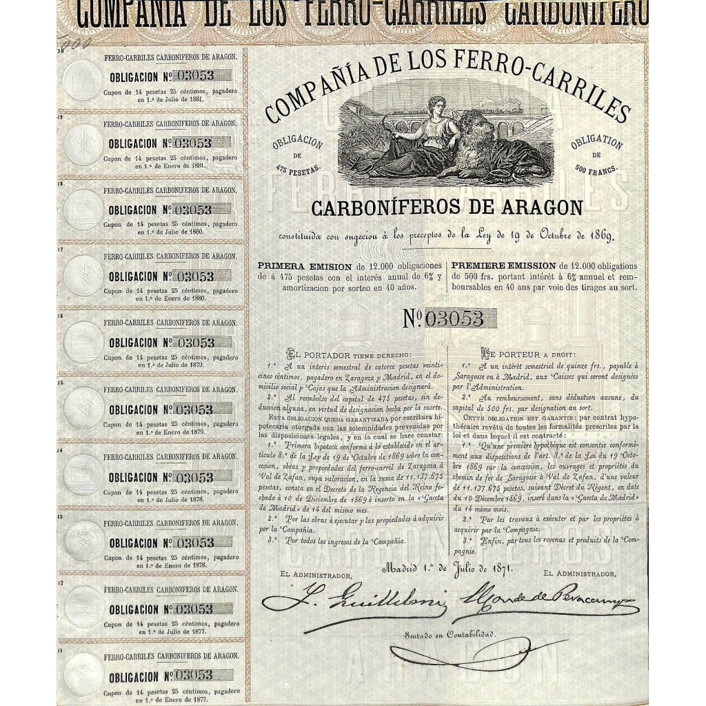 1871 - FERRO-CARRILES CARBONIFEROS DE ARAGON COMP. DE LOS