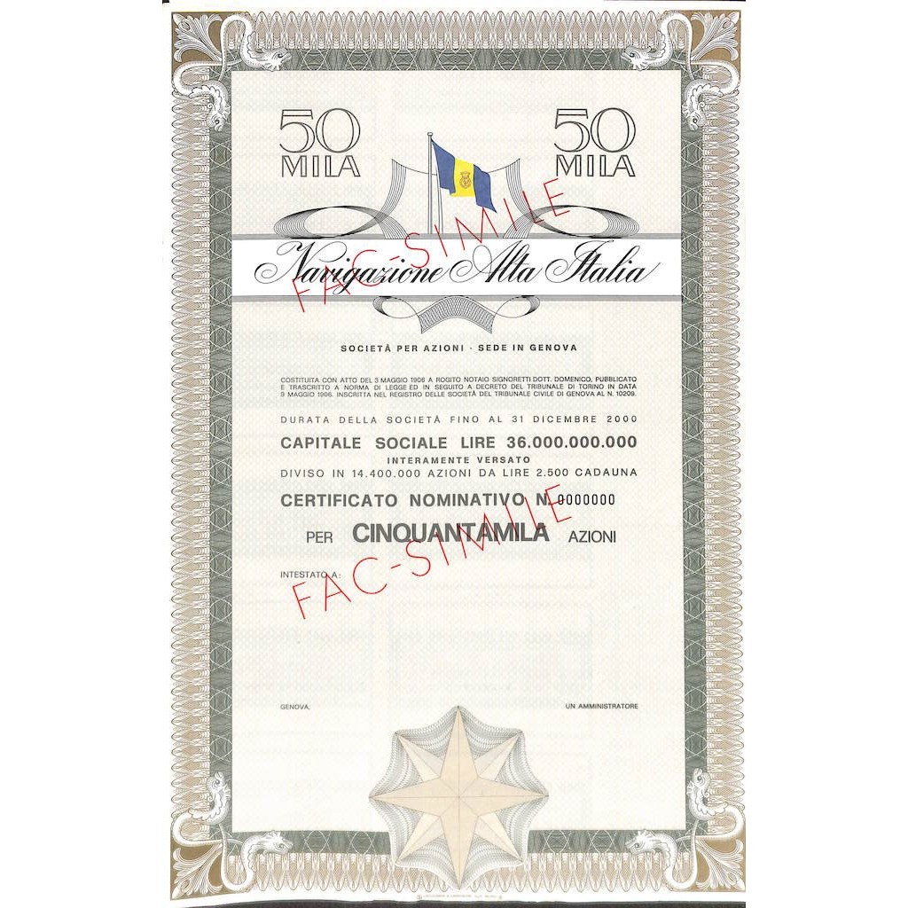 CERTIFICATO NOMINATIVO PER 50000 AZIONI