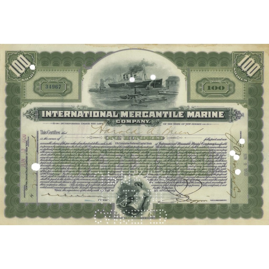 INTERNATIONAL MERCANTILE MARINE - 100 AZIONI - 1920
