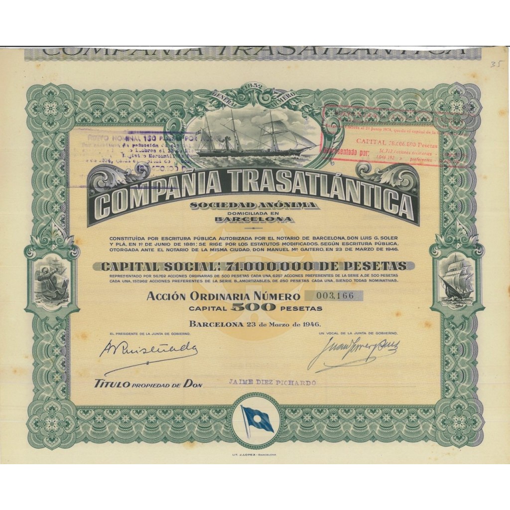 1946 - COMPANIA TRASATLANTICA - 1 AZIONE ORDINARIA