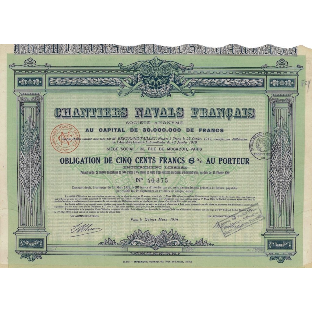 CHANTIERS NAVALS FRANCAIS - 1 OBBLIGAZIONE - 1919