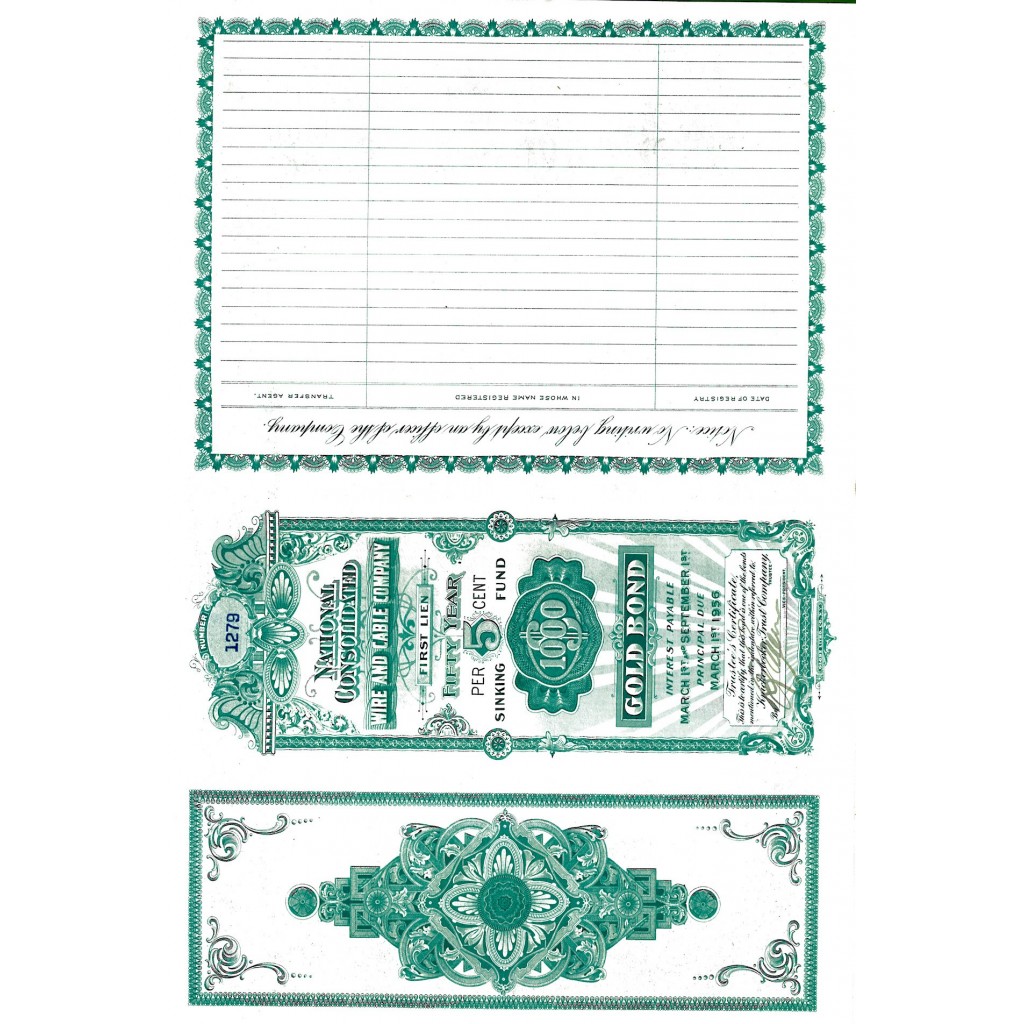 1910 - NATIONAL CONSOLIDATED WIRE AND CABLE COMP. 5%  Gold Bond $ 1.000