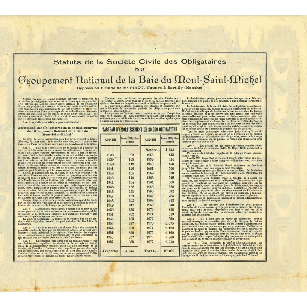 1928 - GROUPEMENT NATIONAL DE LA BAIE DU MONT-SAINT-MICHEL - Obligation de 500 francs 6,5% au Porteur