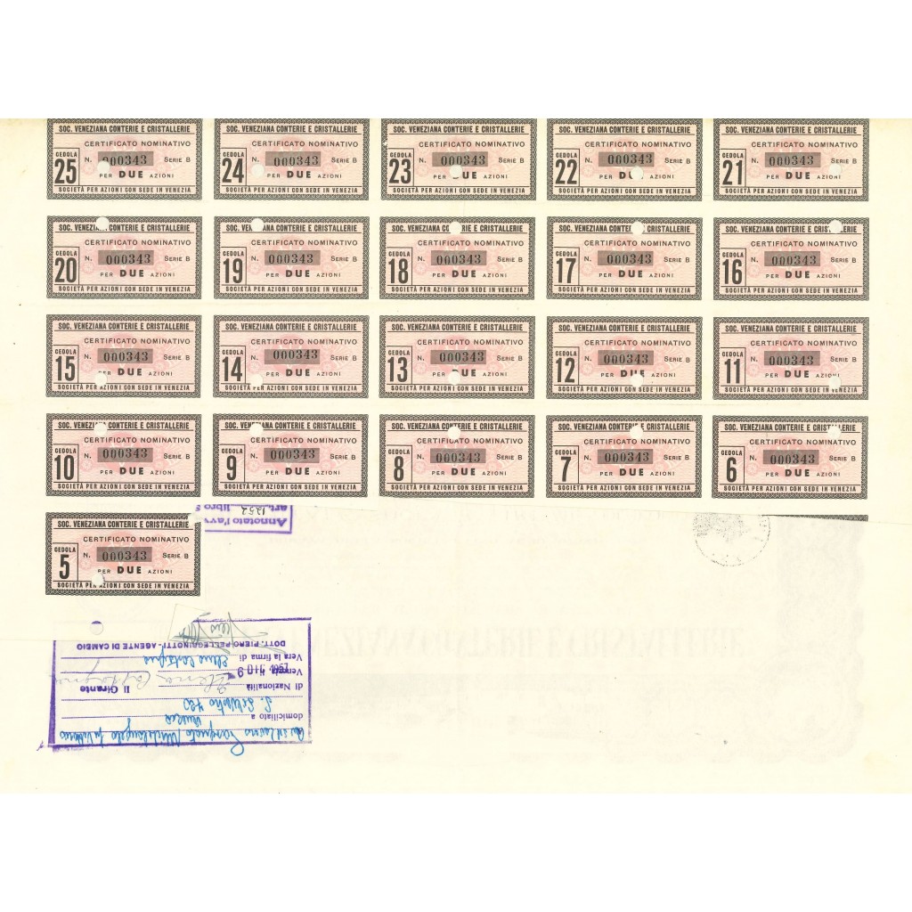 1953 - SOCIETA' VENEZIANA CONTERIE E CRISTALLERIE - 2 AZIONI