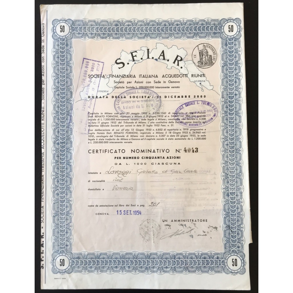 S.F.I.A.R. - 50 AZIONI DA 1000 LIRE - GENOVA 1954