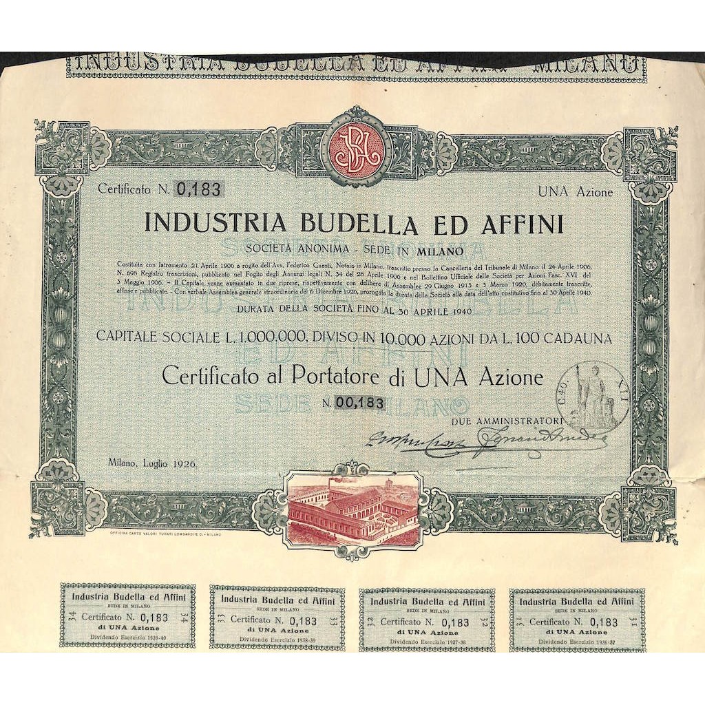 CERTIFICATO AL PORTATORE DI UNA AZIONE