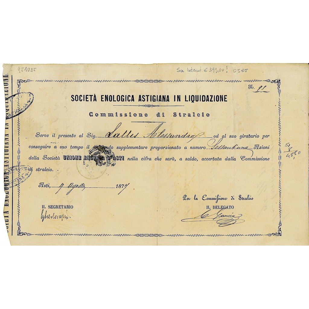 Titolo per azioni della Società "Unione Enofila d'Asti".