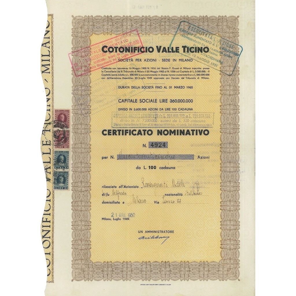 CERTIFICATO NOMINATIVO DI AZIONI
