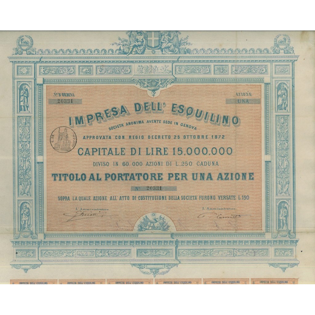 TITOLO AL PORTATORE PER UNA AZIONE
