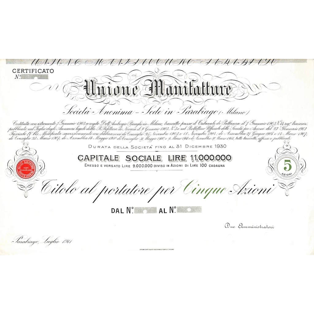 TITOLO AL PORTATORE PER 5 AZIONI