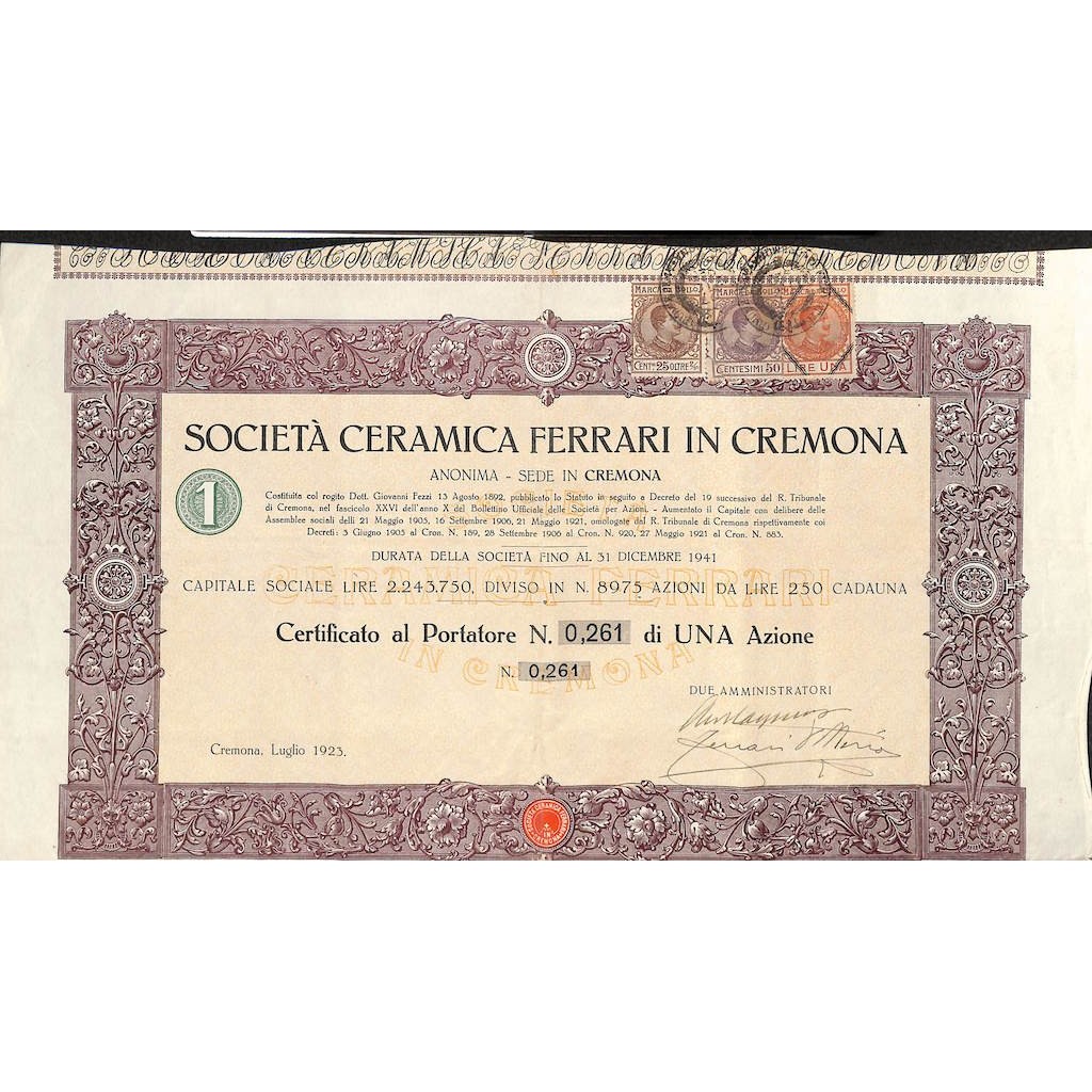 CERTIFICATO AL PORTATORE DI UNA AZIONE
