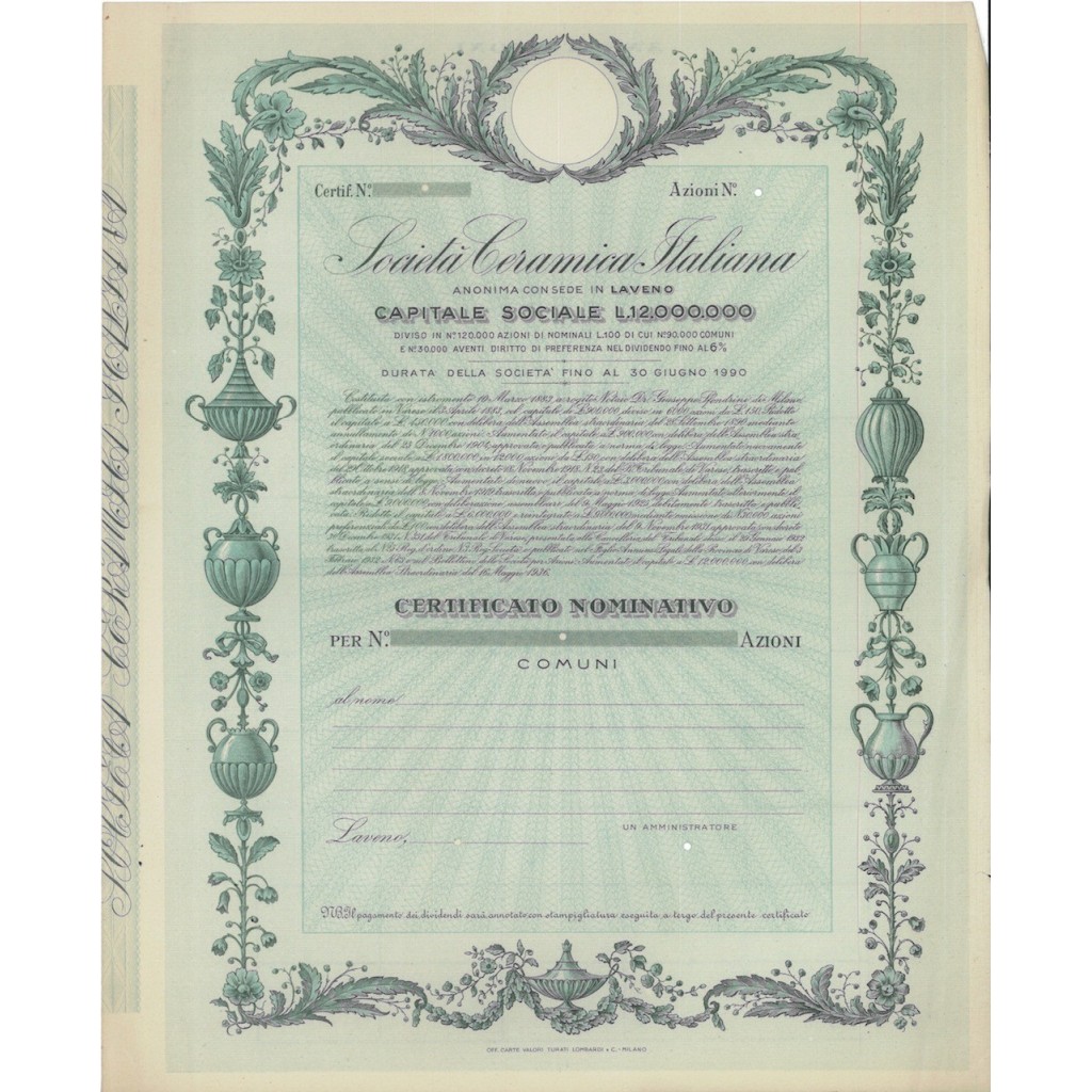 CERTIFICATO PER AZIONI