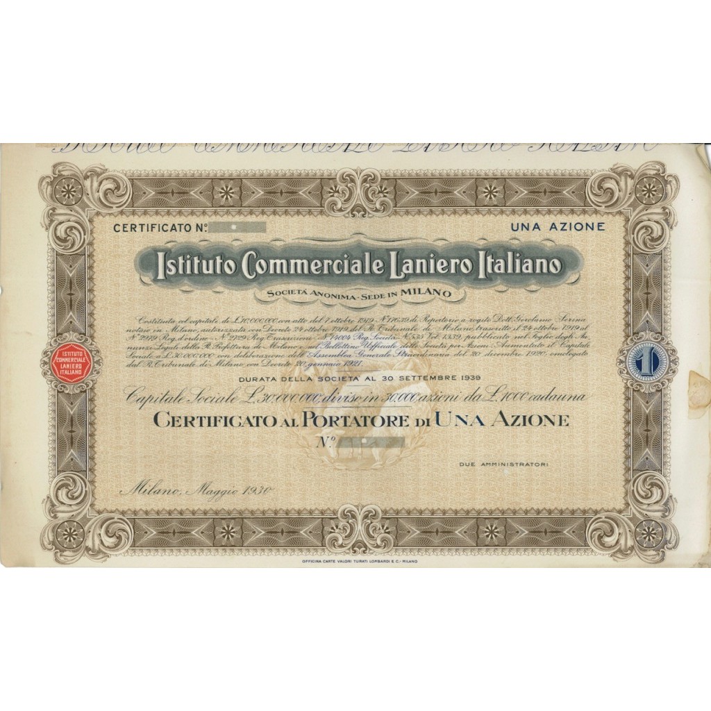 CERTIFICATO AL PORTATORE DI UNA AZIONE