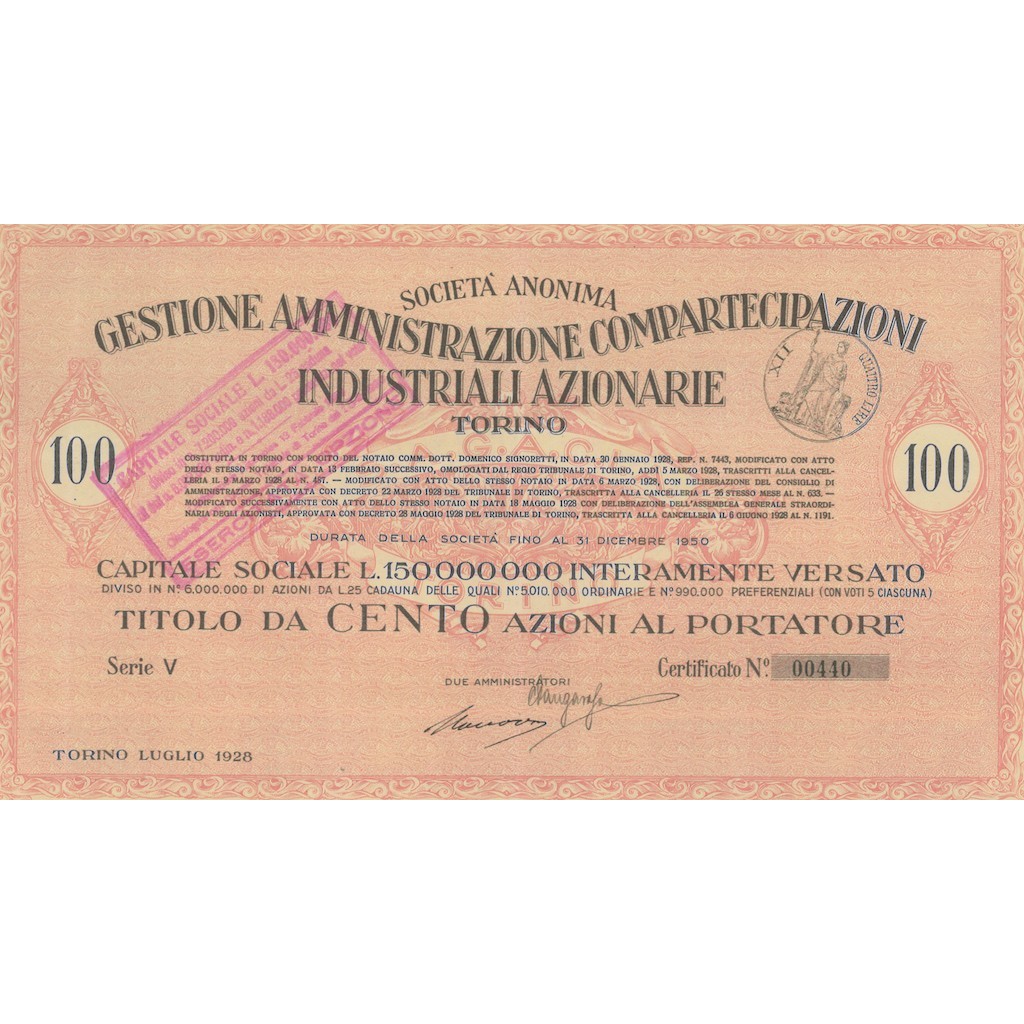 TITOLO DA 100 AZIONI AL PORTATORE