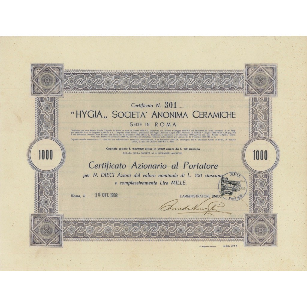 CERTIFICATO AL PORTATORE DA 10 AZIONI