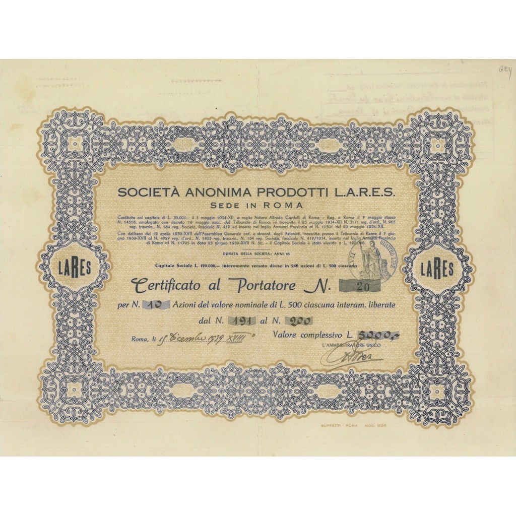 CERTIFICATO AL PORTATORE PER 10 AZIONI
