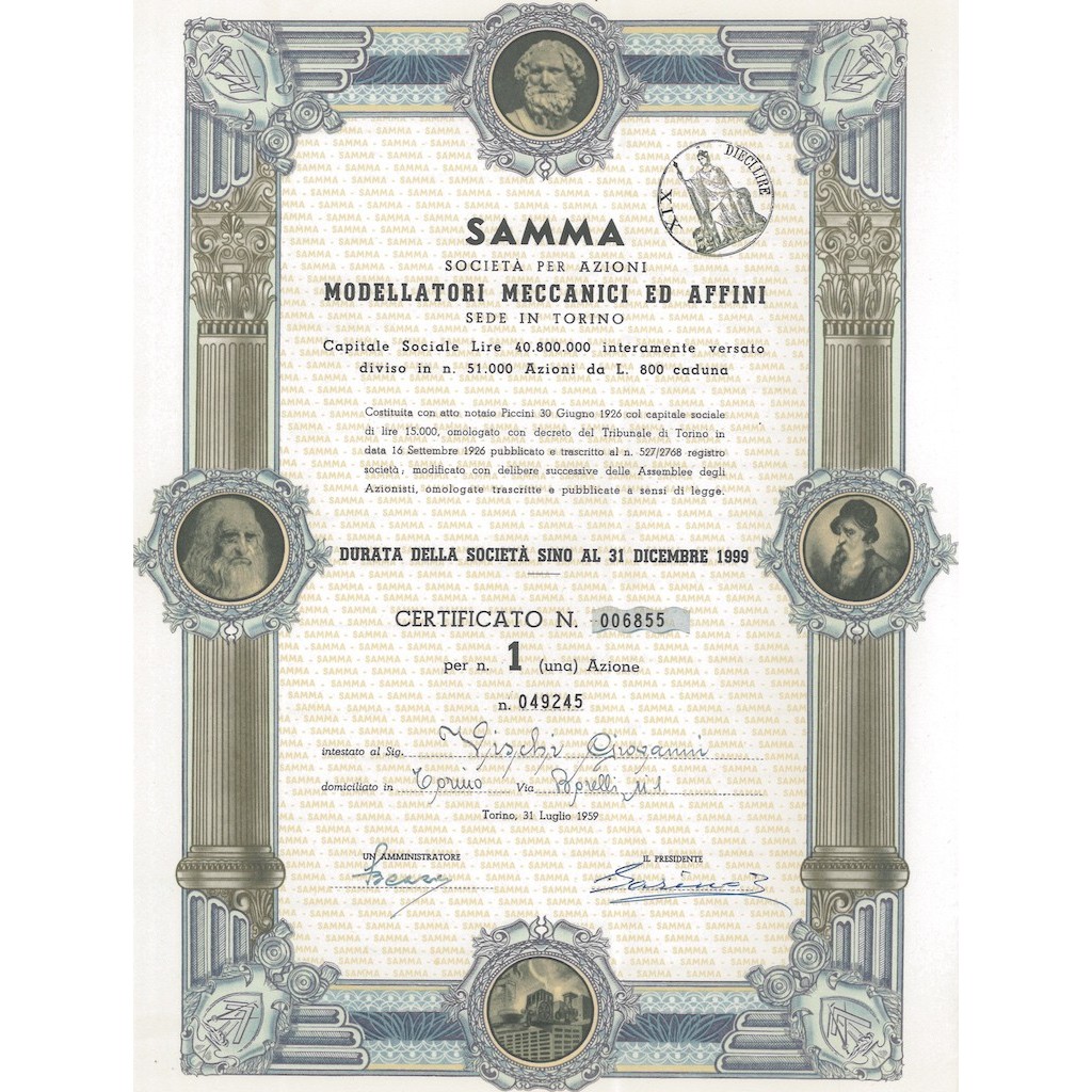 CERTIFICATO DA 1 AZIONE