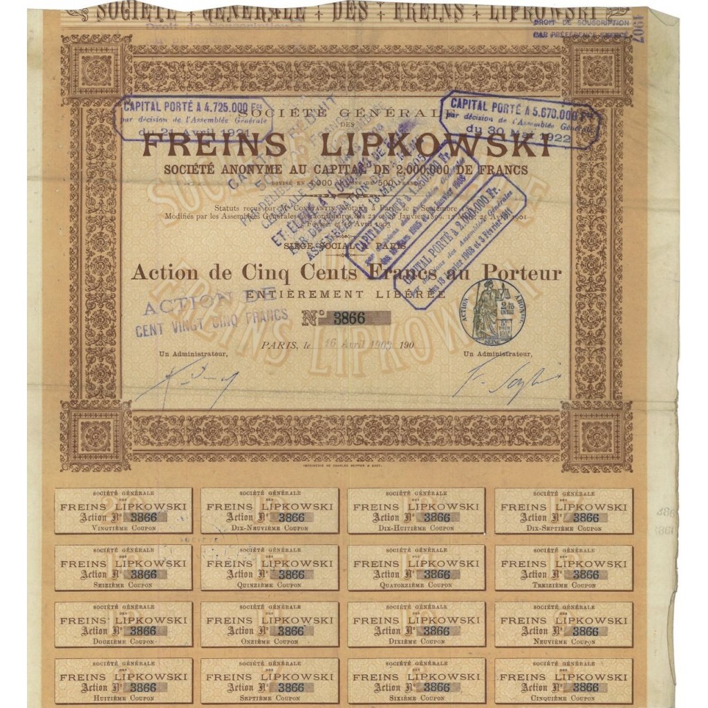 UNA AZIONE AL PORTATORE DI 500 FRANCHI