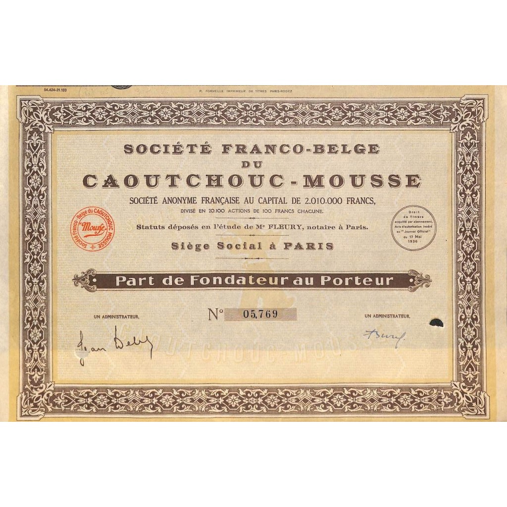 1936 - CAOUTCHOUC-MOUSSE SOC. FRANCO-BELGE DU